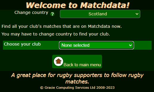 looking for a match or a club in a different country for example. Just select the country you need and Matchdata will set the country you choose as the